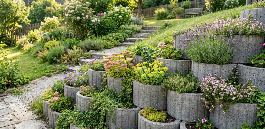 Die klassischste Anwendung von Pflanzsteinen ist die Hangbefestigung. Wenn Ihr Garten ein Gefälle aufweist, sind Pflanzsteine eine hervorragende Alternative zu klassischen Betonmauern. Sie stabilisieren das Erdreich, verhindern das Abschwemmen von Erde durch Regen und schaffen gleichzeitig attraktive Pflanzflächen.